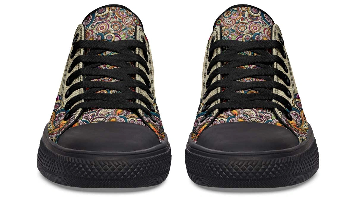 Make a powerful statement with the Day of the Dead Skull Pattern Black Lowtop Sneakers. Inspired by vibrant Mexican cultural art, these shoes showcase a high-contrast sugar skull design that adds an edgy, artistic touch to any outfit. Crafted with a durable canvas upper and a cushioned sole, they offer the perfect balance of urban comfort and standout style. Ideal for streetwear enthusiasts and fans of traditional folk art, these skull-patterned sneakers are built for everyday wear and lasting impact in any setting.